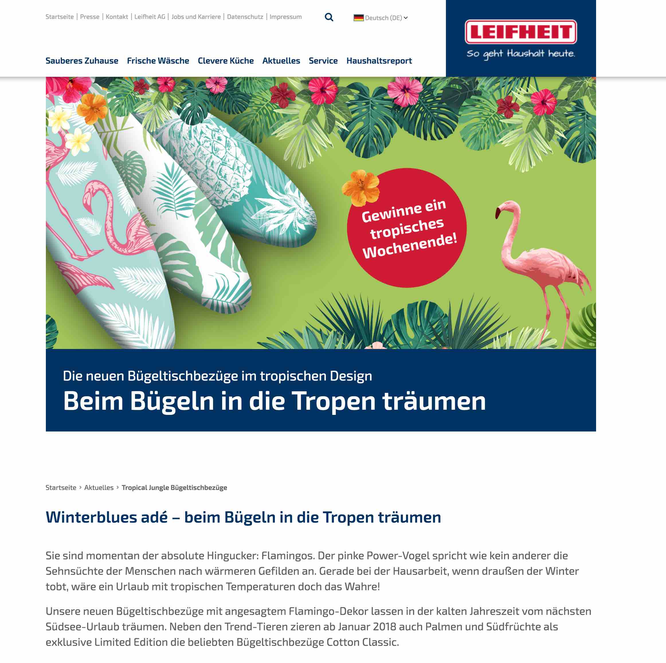 Leifheit ▶︎ Gewinn: Urlaub im Tropical Island im Wert von bis 550,- € Lösungsvorschlag: Flamingo Teilnahmeschluss: 29.04.2018 Link: abgelaufen