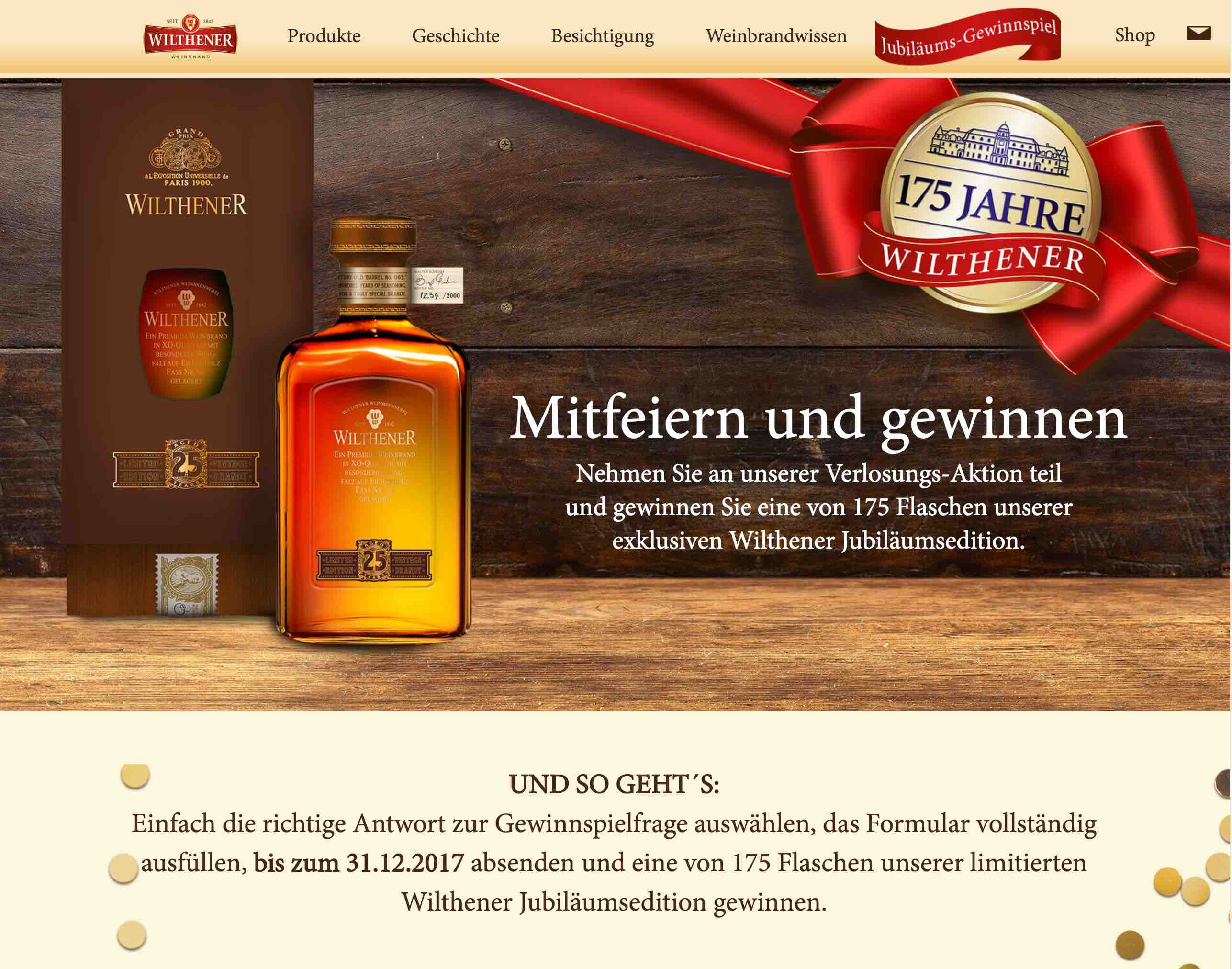 Wilthener Gewinn: 175 Flaschen edler Weinbrand Lösungsvorschlag: 1842 Teilnahmeschluss: 30.12.2017 Link: abgelaufen