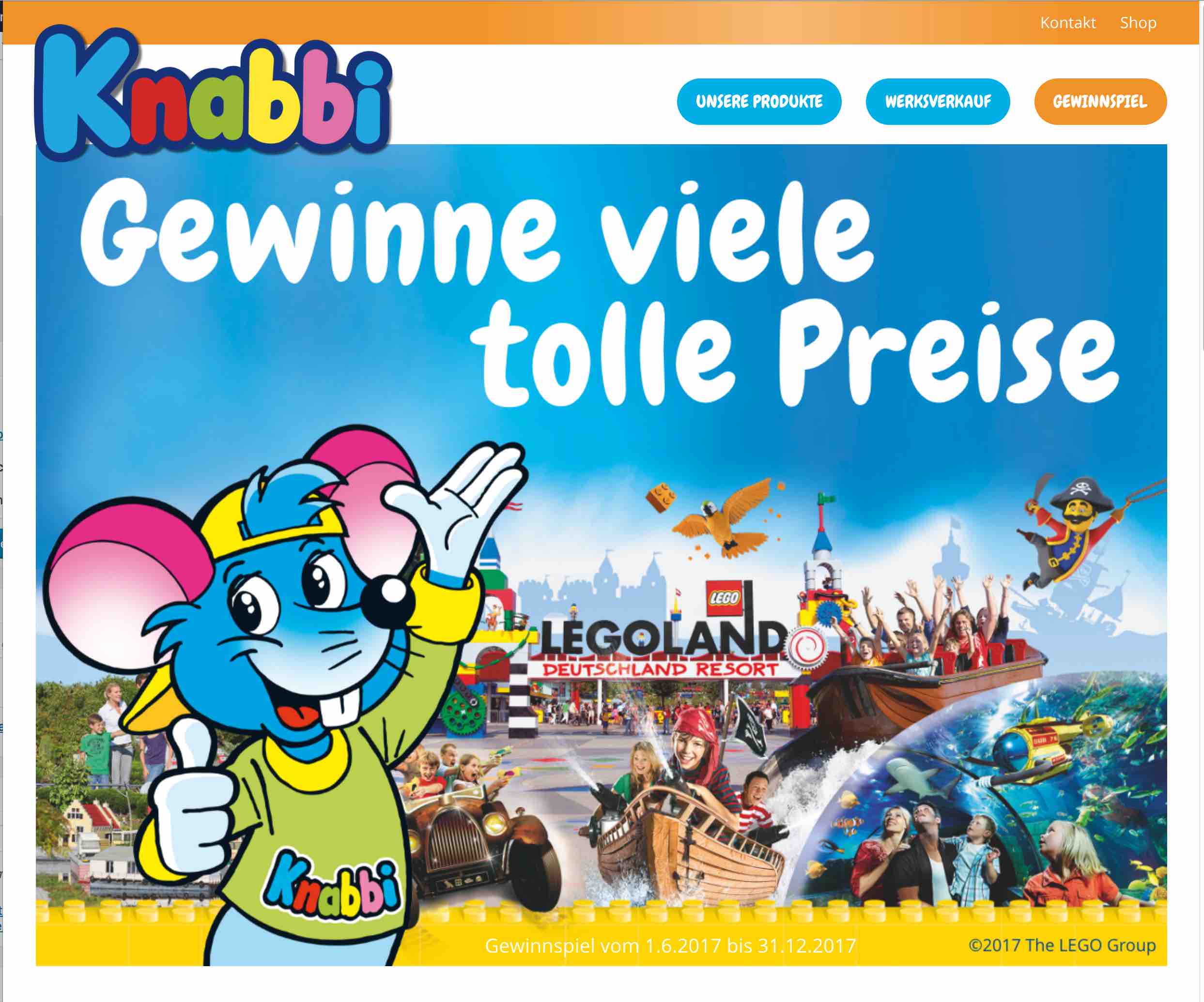 Knabbi Gewinn: 1 x vier LEGOLAND Tageskarten, 28 x Produktpaket Lösungsvorschlag: selbst entscheiden Teilnahmeschluss: 30.12.2017 Link: abgelaufen