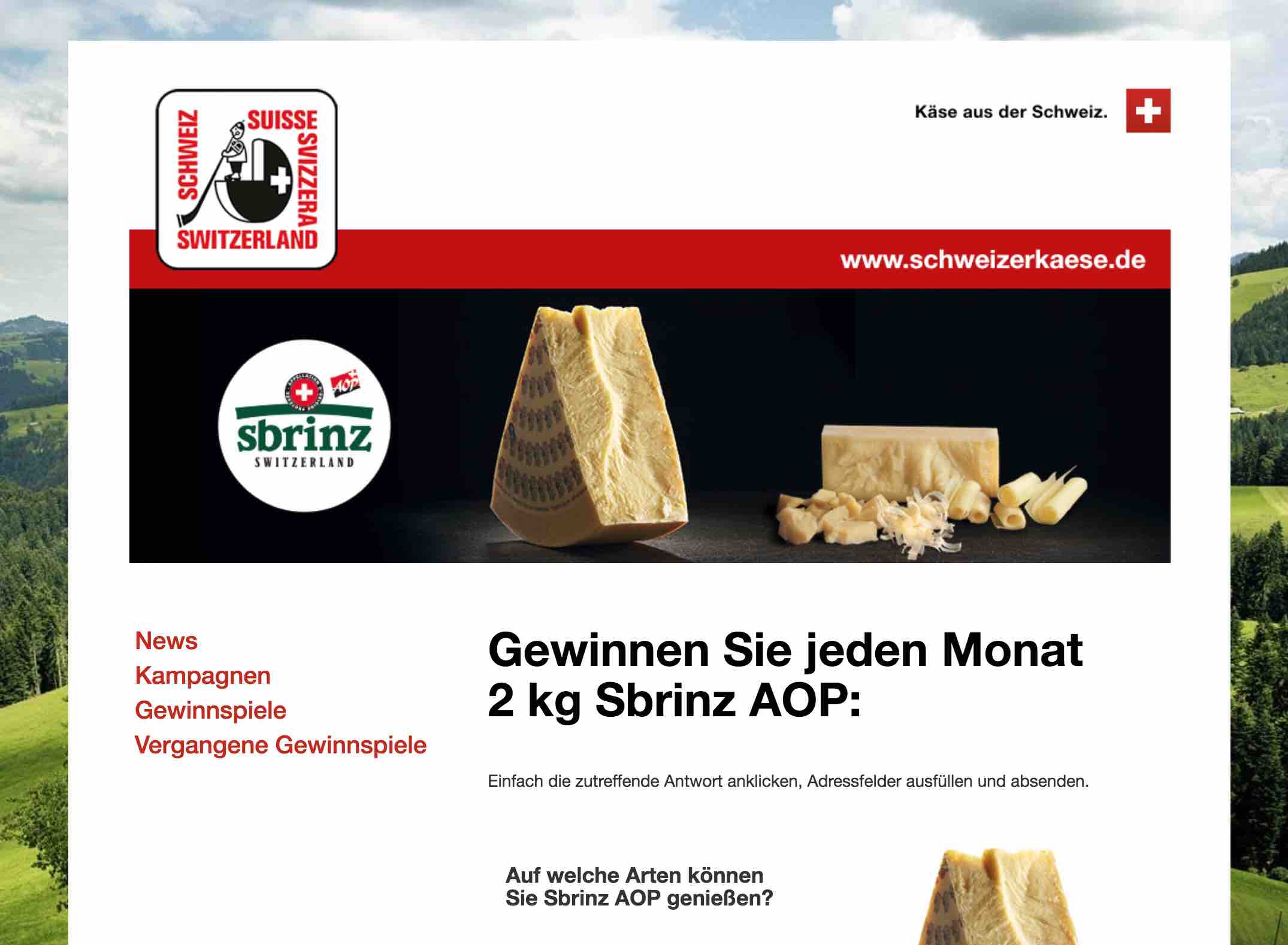 Schweizer Käse Gewinn: 2 kg Sbrinz AOP Lösungsvorschlag: Zu kernigen „Möcklis“... Teilnahmeschluss: 30.12.2017 Link: abgelaufen