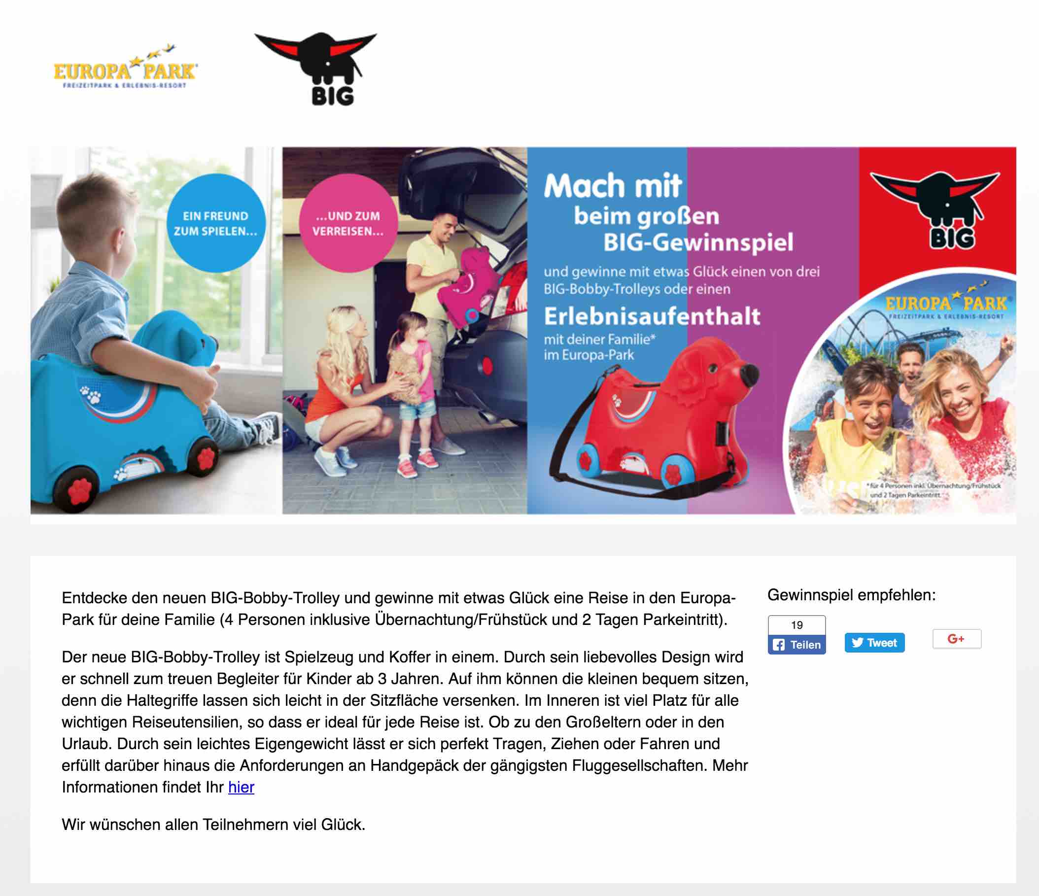 BIG Bobbycar Gewinn: Reise in den Europa-Park für deine Familie Lösungsvorschlag: STERN Teilnahmeschluss: 14.12.2017 Link: abgelaufen