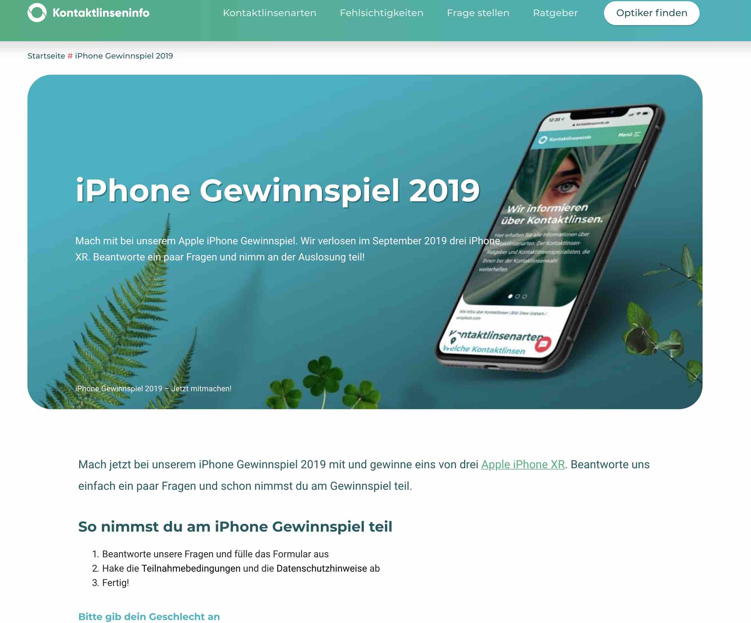 Kontaktlinseninfo ▶︎ Gewinn: 3x iPhone XR Lösungsvorschlag: - nicht nötig - Teilnahmeschluss: 30.08.2019 Link: abgelaufen