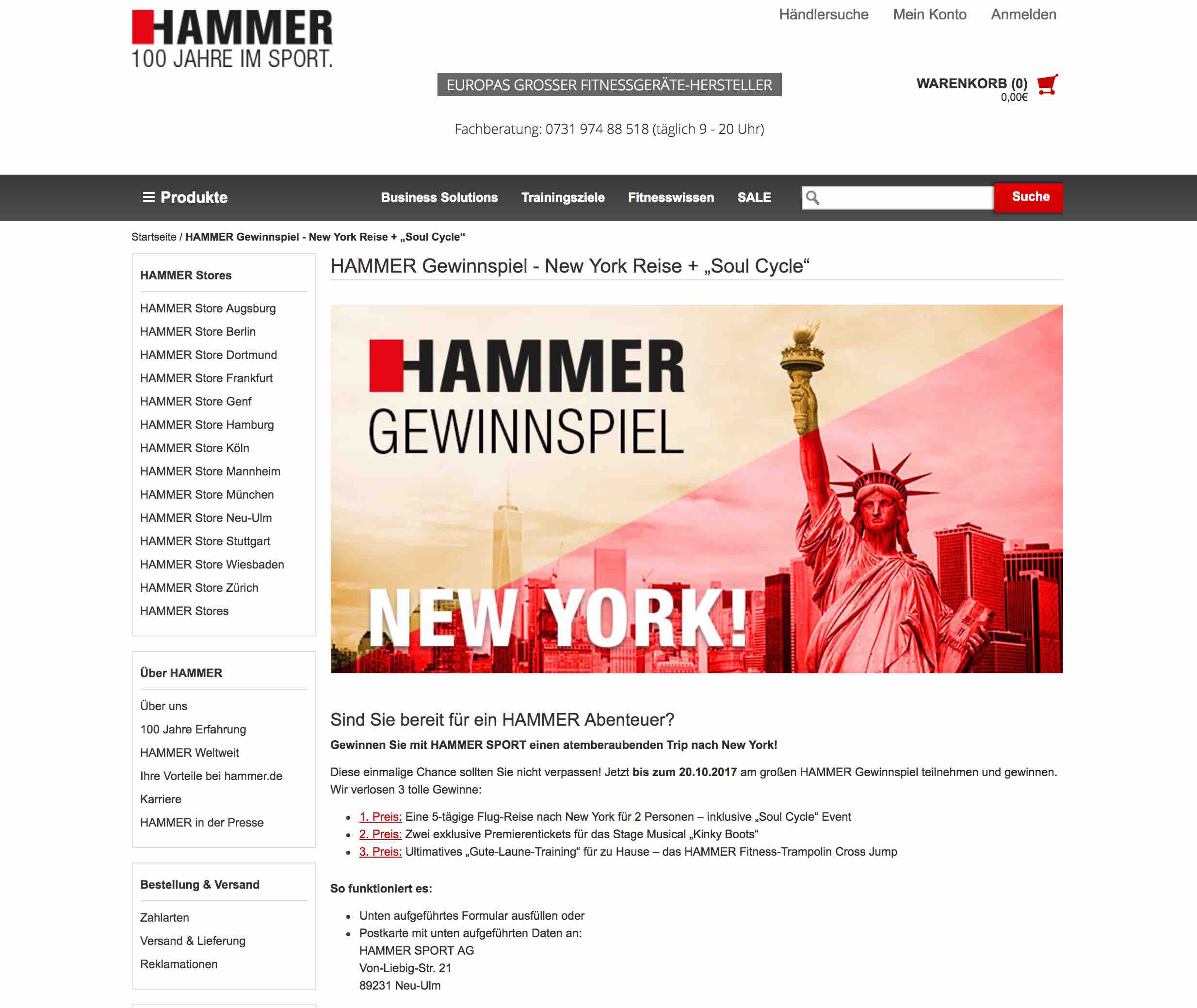 Gewinn: 5-tägige Flug-Reise nach New York für 2 Personen, Zwei exklusive Premierentickets für das Stage Musical „Kinky Boots“, HAMMER Fitness-Trampolin Cross Jump