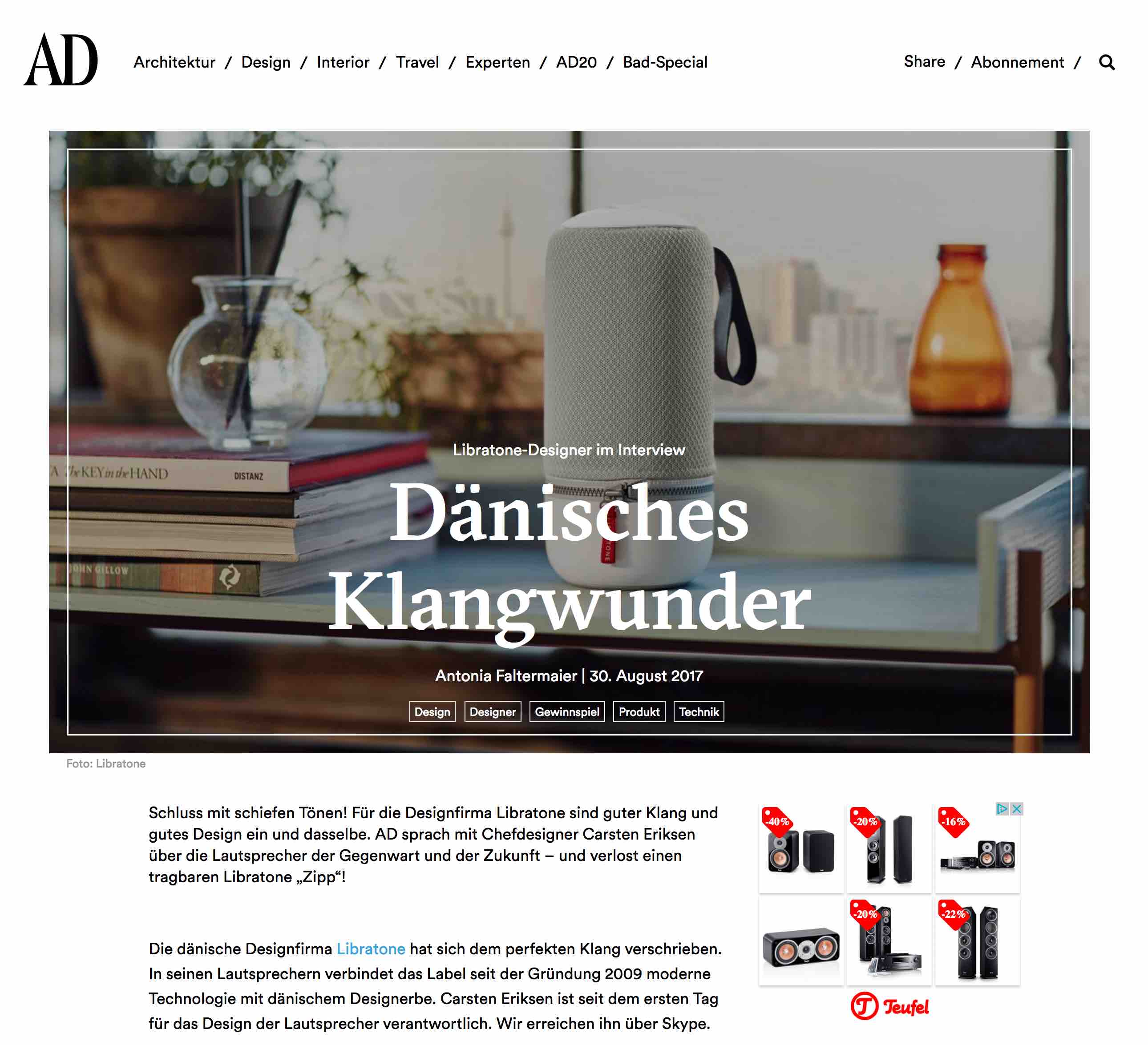 AD Magazin Gewinn: Lautsprecher „Zipp CPH“ mit 360-Grad-Sound, Wert 399€ Lösungsvorschlag: - Teilnahmeschluss: 09.10.2017 Link: abgelaufen