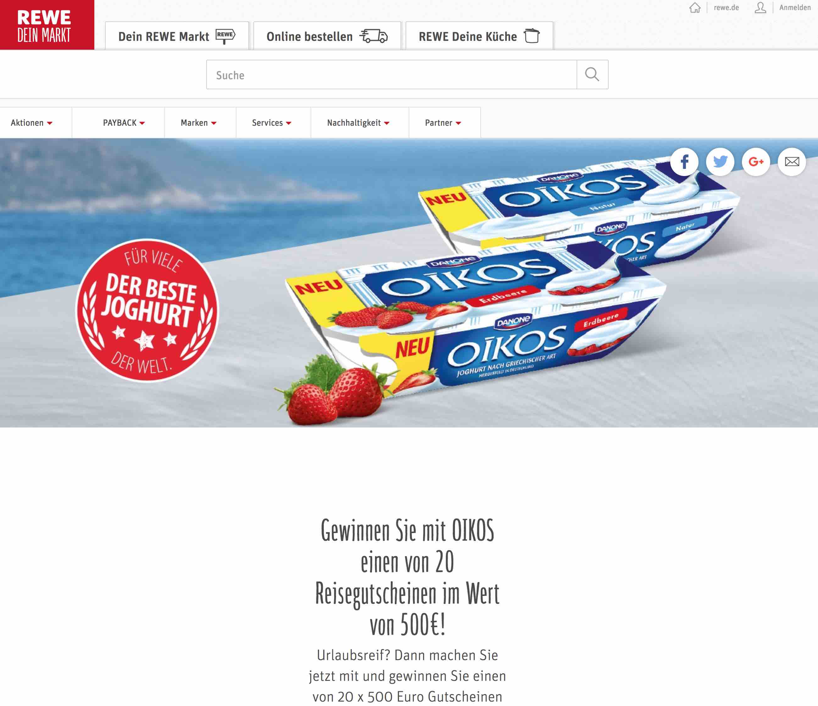 Rewe Gewinn: 1 von 20 Reisegutscheinen im Wert von 500€ Lösungsvorschlag: Griechenland Teilnahmeschluss: 12.10.2017 Link: abgelaufen