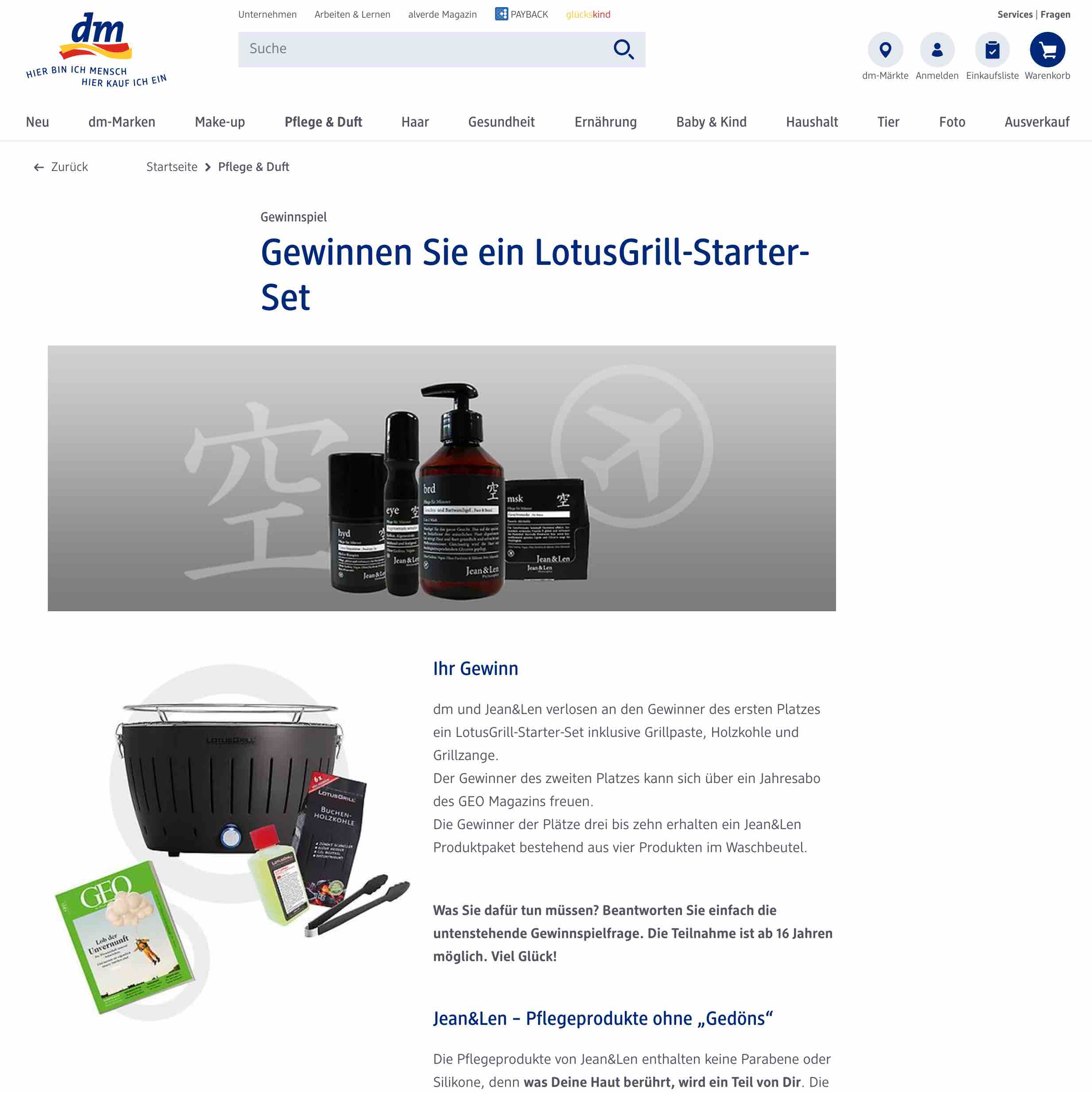 dm drogerie markt Gewinn: LotusGrill-Starter-Set Lösungsvorschlag: Gedöns Teilnahmeschluss: 30.09.2017 Link: abgelaufen