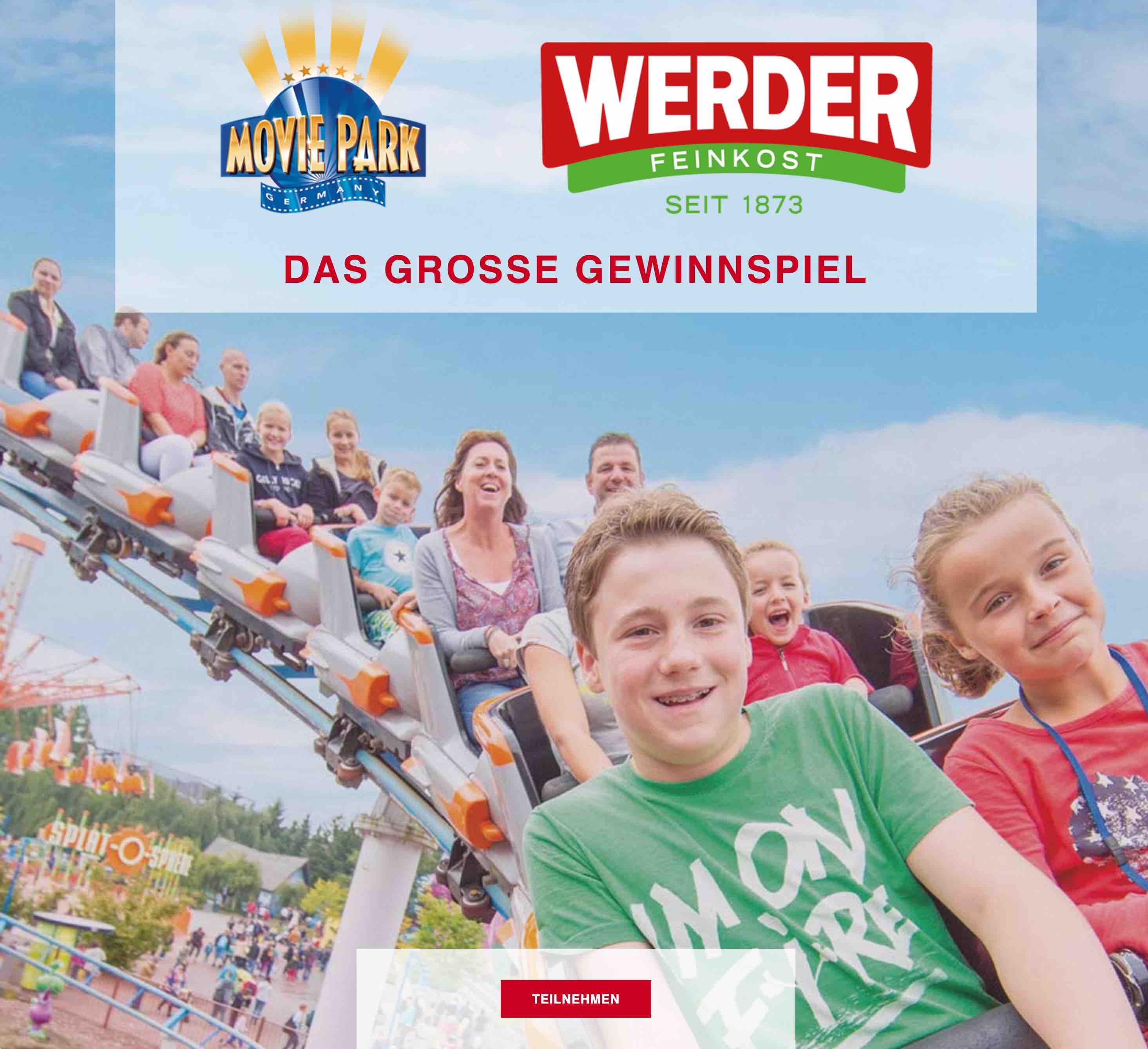 WERDER Feinkost Gewinn: VIP-AUFENTHALT für 4 Personen im MOVIE PARK GERMANY Lösungsvorschlag: - Teilnahmeschluss: 29.09.2017 Link: abgelaufen