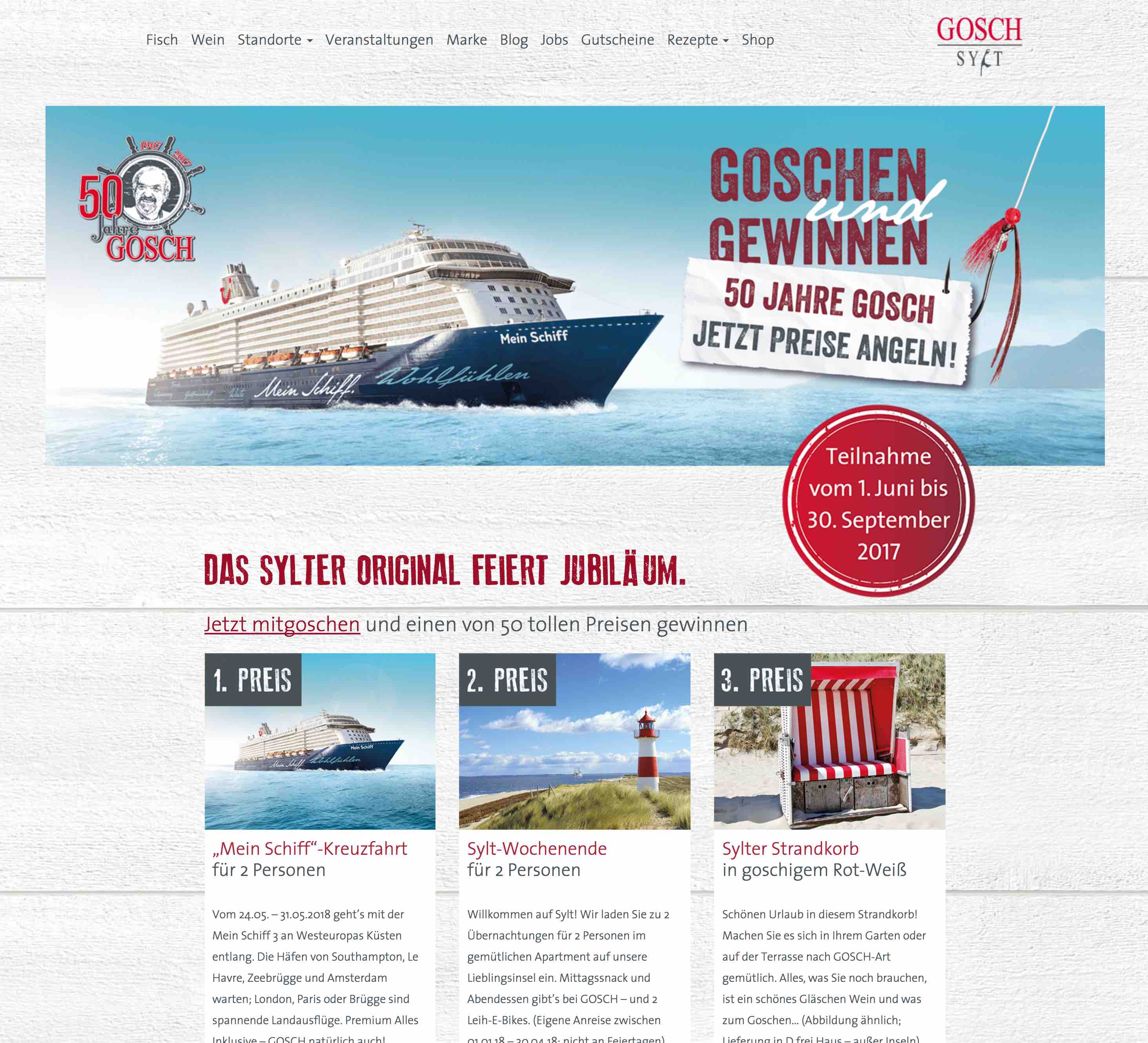 GOSCH SYLT Gewinn: Kreuzfahrt für 2 Personen; Sylt-Wochenende für 2 Personen; Strandkorb; PKW-Fährfahrt; Gutscheine im Wert von 50€ Lösungsvorschlag: Jünne Teilnahmeschluss: 29.09.2017 Link: abgelaufen