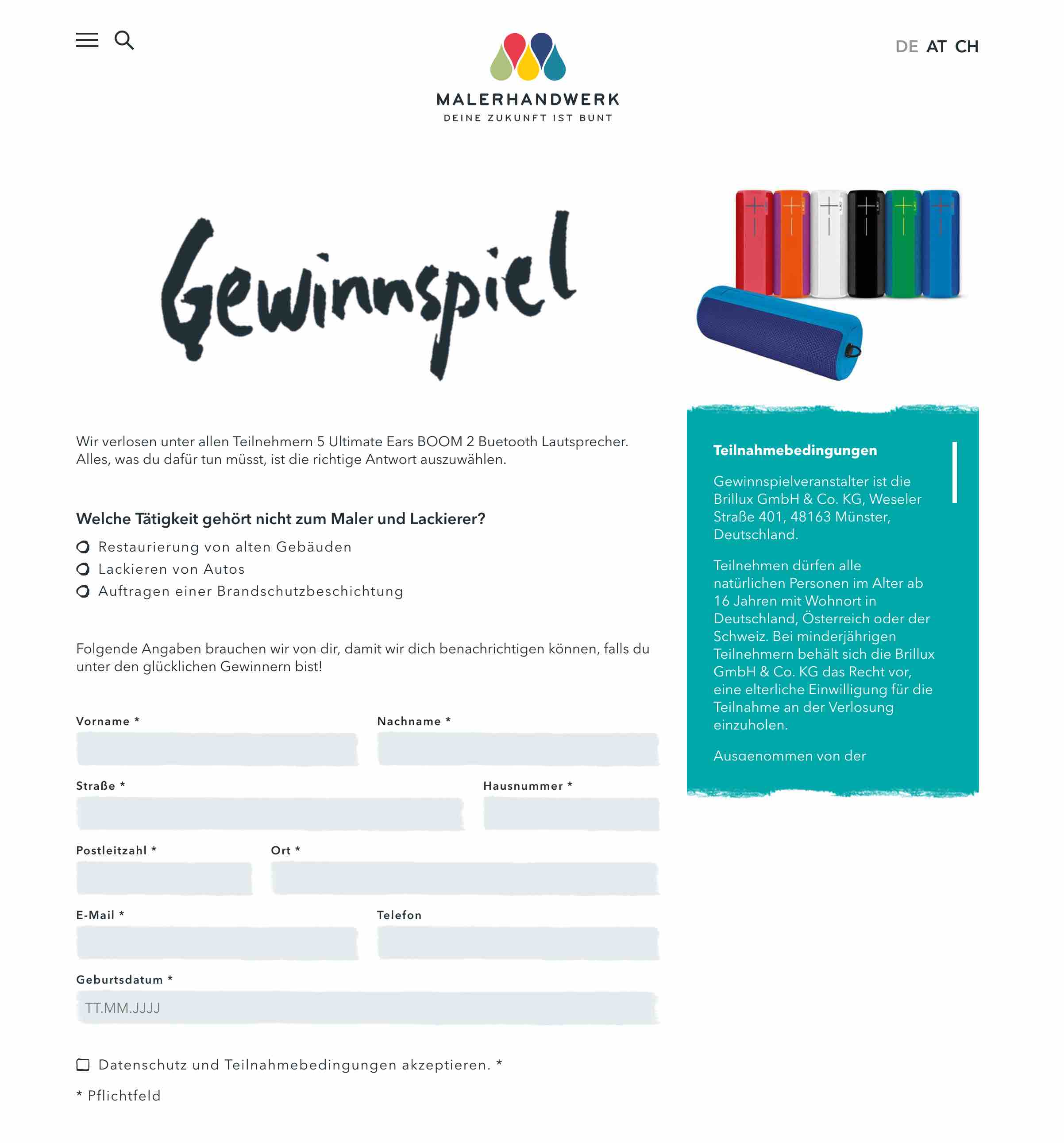 MALERHANDWERK Gewinn: Ultimate Ears BOOM 2 Bluetooth Lautsprecher Lösungsvorschlag: Restaurierung von alten Gebäuden Teilnahmeschluss: 28.09.2017 Link: abgelaufen