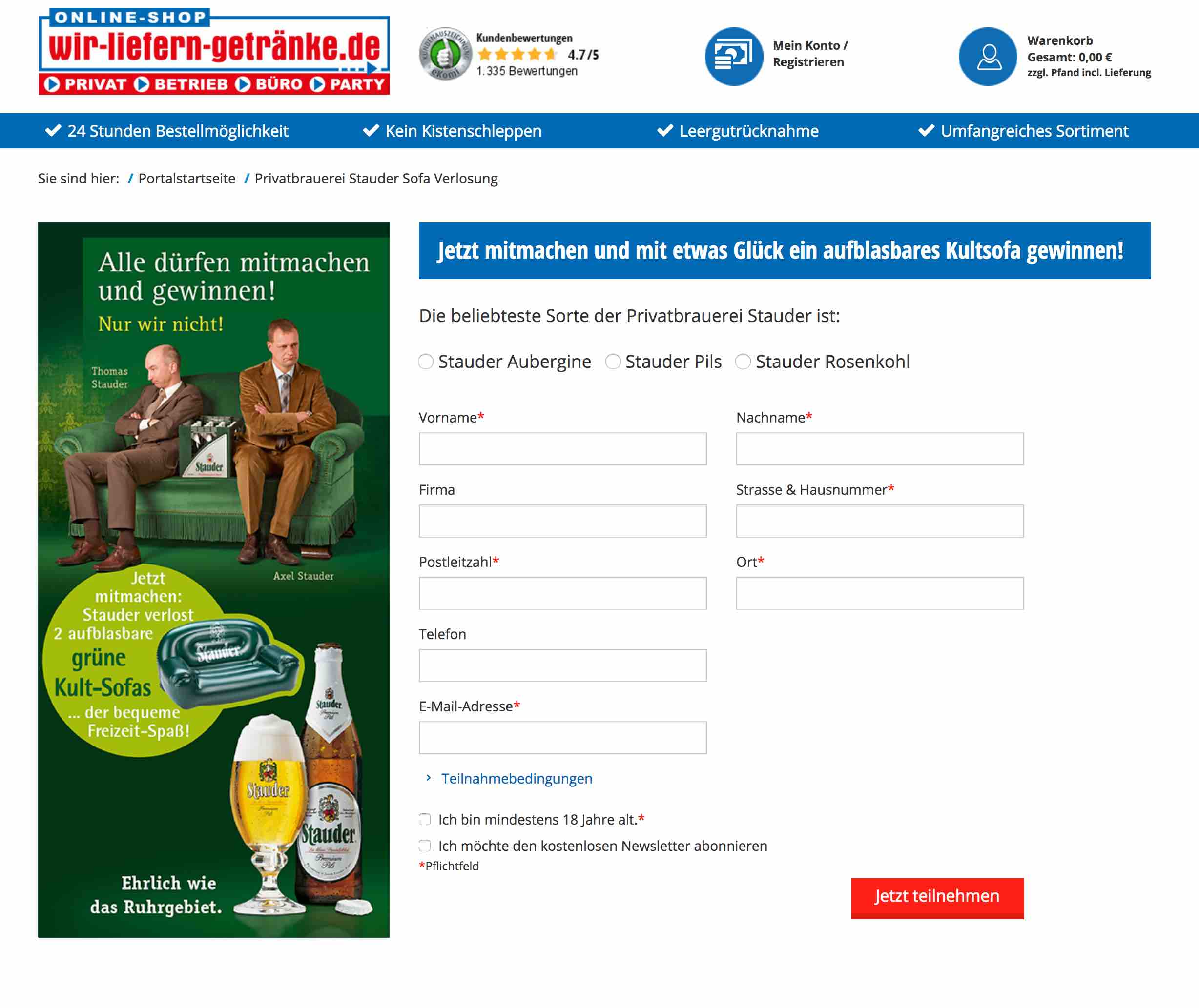 wir-liefern-getränke.de Gewinn: aufblasbares Kultsofa Lösungsvorschlag: Stauder Pils Teilnahmeschluss: 28.09.2017 Link: abgelaufen