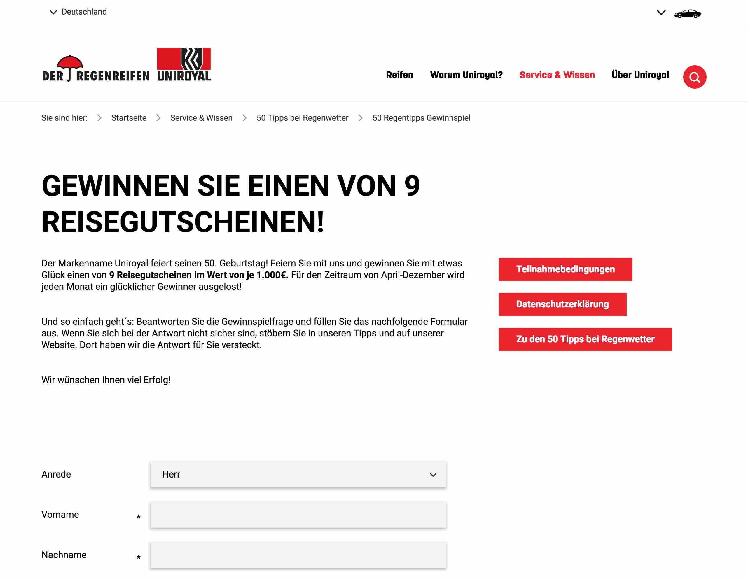 Uniroyal Gewinn: 9 Reisegutscheine im Wert von je 1.000 € Lösungsvorschlag: Oscar Englebert Teilnahmeschluss: 30.12.2018 Link: abgelaufen