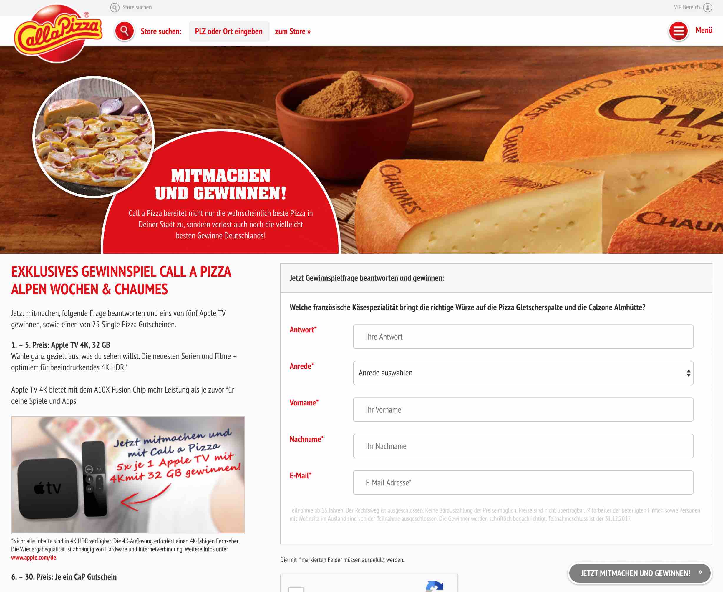 Call a Pizza Gewinn: 5x Apple TV 4K mit 32 GB Lösungsvorschlag: Chaumes Teilnahmeschluss: 30.12.2018 Link: abgelaufen